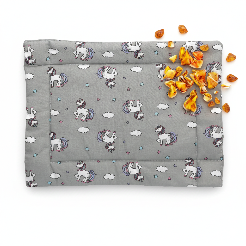 Helyezd a borostyános babapárnát a baba közelébe pihenés vagy alvás közben. A puha anyag és a természetes borostyánpor nyugtató hatása segíthet a fogzással járó kellemetlenségek enyhítésében. A párna önállóan is használható, közvetlen érintkezés nélkül, felnőtt felügyelete mellett.